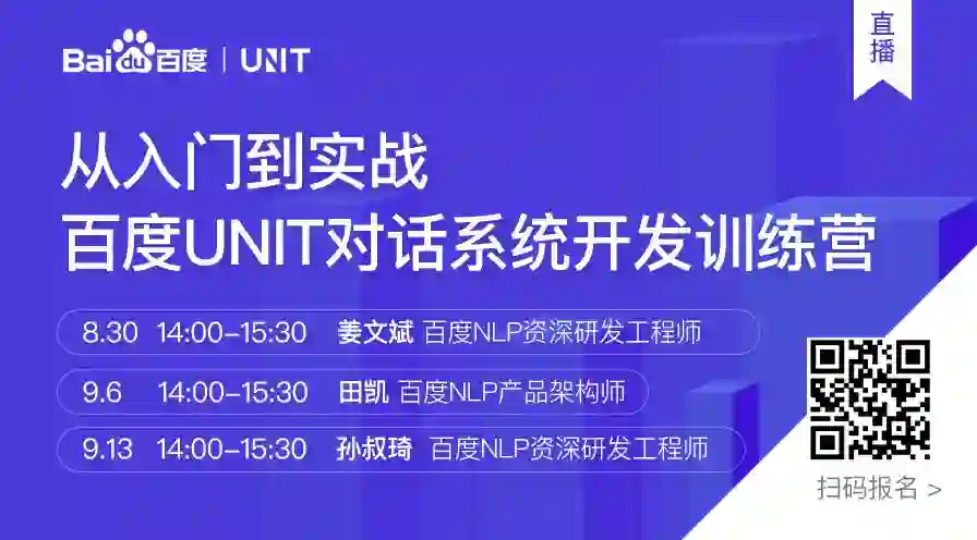 为了让更多开发者学习百度 UNIT 对话系统开发技能,8 月 30 日起每周四 14:00-15:30,InfoQ 与百度联合推出“ 从入门到实战 百度 UNIT 对话系统开发训练营”主题活动,将有百度的三位大咖级专家联合出席讲授三门线上课程,从 UNIT 对话系统的基本结构和功能入手,介绍 UNIT 核心模块和常用技术,以及 UNIT 平台底层机制,零起步零编程,教你快速完成对话系统的搭建和应用,掌握 UNIT 高级实用技巧,完成对话系统全套开发实践。