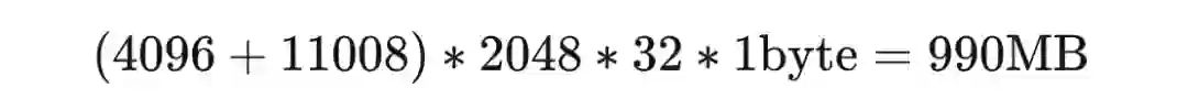 再根据LLaMA的架构(hidden_size = 4096, intermediate_size =11008, num_hidden_layers = 32, context_length = 2048)计算中间变量内存。