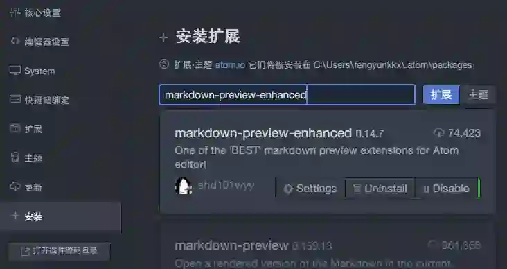 我们以这款 Markdown-preview-enhanced 插件为例。