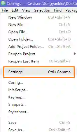 在 File 中找到 Settings,进入设置页面。