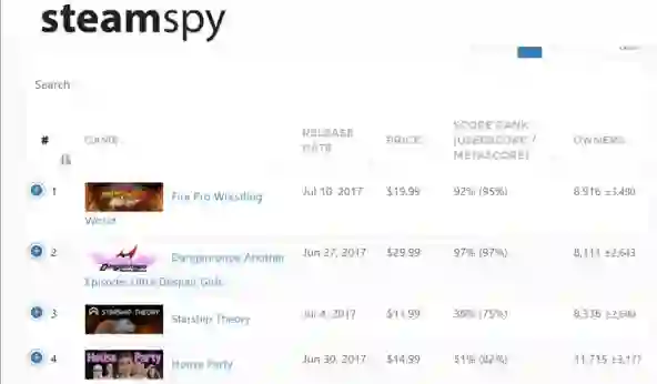 SteamSpy就是一个致力于收集Steam玩家数据,然后以图形的形式展现出来的数据收集网站。SteamSpy利用Steam提供的Web API,每天拉取数百万个公开用户的资料,并以此估算所有游戏在整个Steam中的销量、玩家、以及地区分布等等。