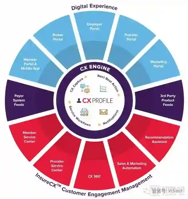 Zipari的产品核心是一整套为医疗保险公司设计的针对用户体验的解决方案,由三部分组成:CX Engine、Digital Experience数字化服务系列产品和InsureCX Customer Engagement用户管理。