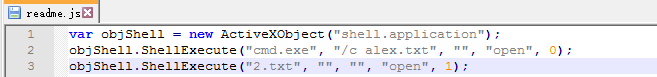 objShell.ShellExecute("cmd.exe","/c alex.txt", "", "open", 0);