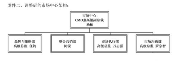 杨柘将继续负责营销,任市场中心CMO,向董事长兼CEO黄章汇报;李楠则成了营销中心CSO,负责Sale(销售)部分,即销售中心相关业务及团队管理, 向黄章汇报。