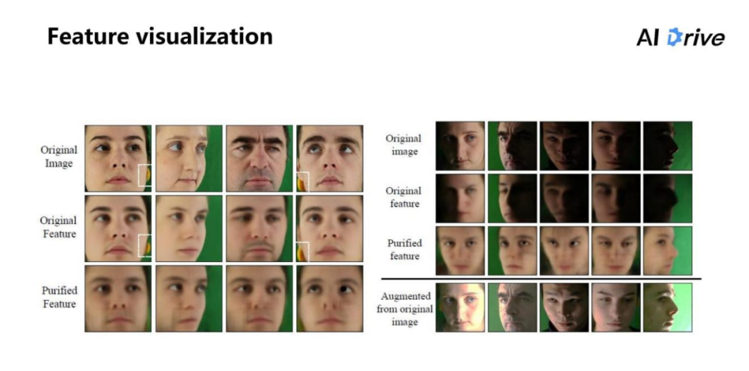 第三行的 Purified Feature 就是特征纯化的结果,但是重建出来的图片能够明显看出,对于每个人来说,其实提取到特征中间,每个人看起来都已经是学习到类似于平均脸的模型。