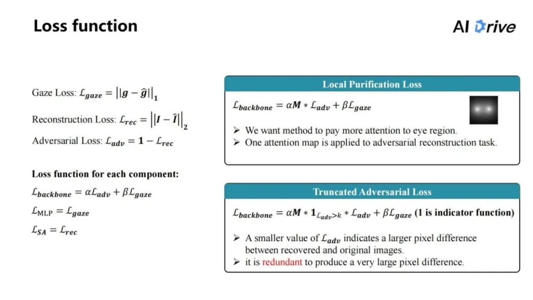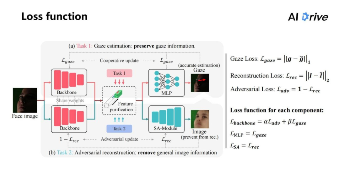另一方面,这整个网络结构的 Framework 是包含两个任务的,一个是视线估计任务,一个是对抗重建任务。