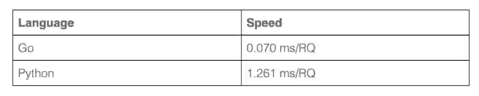 我们可以无休止地谈论Golang或Python的优缺点,但是当我们考虑部署使用时,我们都期待它们能有卓越性能。因此,我们在Intel®Core™i7–9700KCPU @ 3.60GHz × 8核的测试设备上进行了一些测试。测试代码可以从这里获得https://github.com/sekarasiewicz/go-python-benchmark。
