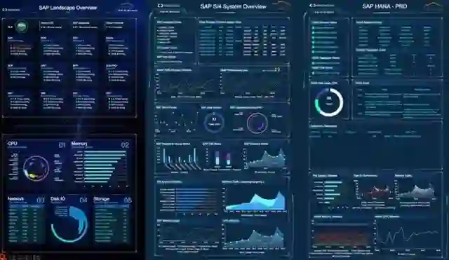 在大会展区现场,由阿里云、驻云联合开发的SAP系统监控大屏重磅亮相,自此开启全球领先的SAP核心系统集中智能感知时代,吸引了众多专业大咖驻足观看。人潮涌动中可见三块蓝色大屏闪烁雀跃,12个企业关键应用包括SAP S/4 HANA、BW、PO、CRM、OA等指标实时监控,CPU、云网络等阿里云资源使用状况一目了然,单个S/4应用实例以及HANA数据库亦全都精确呈现。