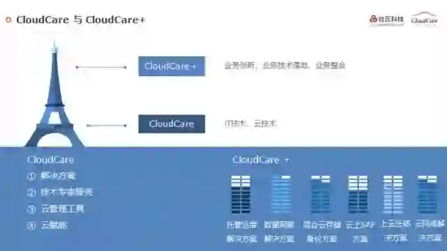 图2 CloudCare四大核心服务板块和升级版CloudCare+包含的六大高性价比技术解决方案