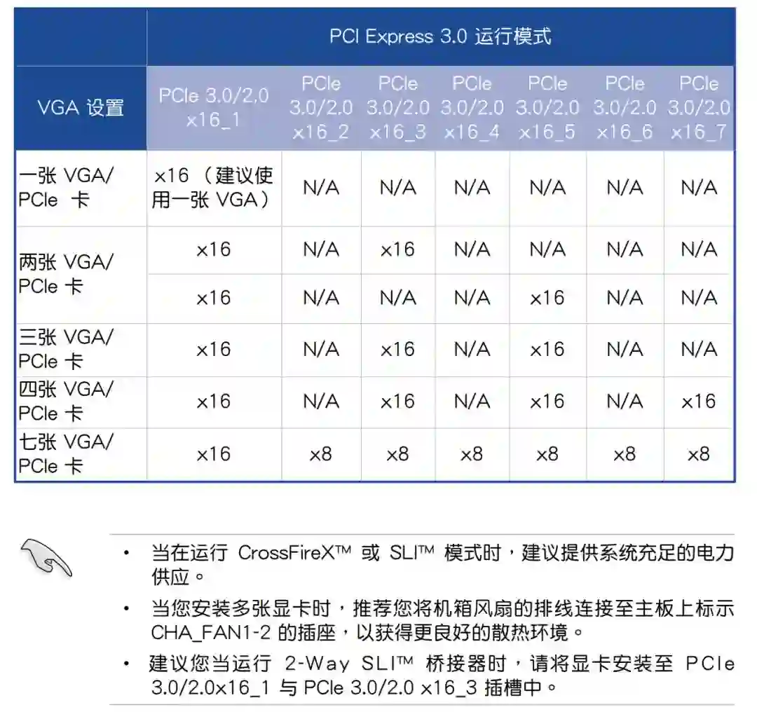 PCI-E 同时可以支持几张卡以什么样的速度运行,如 1x16 + 3x8 是常见的配置
