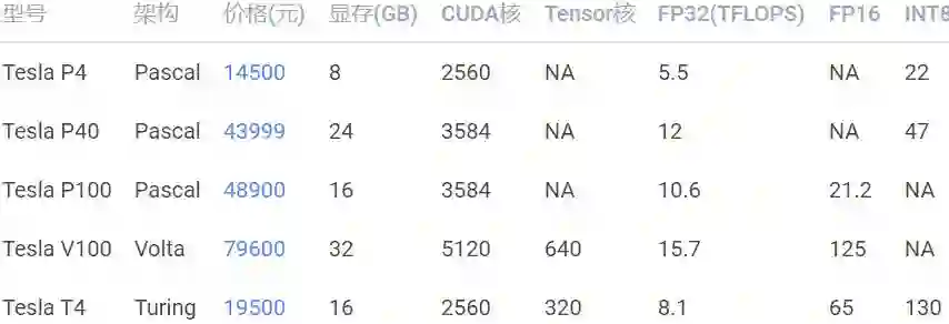 除了用于训练,还有一类卡是用于推断的(只预测,不训练),如: