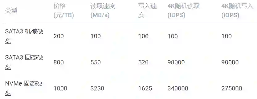 SATA3 机械硬盘没有太好的数据来源,所以数据是经验值