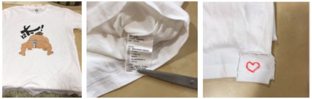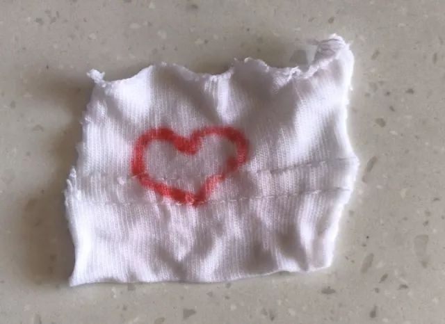 于是再一次尝试开始,牺牲一件带鱼T,100%纯棉,白色,我画上了一颗小心心。