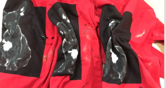 为了公平性,我买来了6件某品牌新年款,同一款卫衣,6件,分别制造了,日常生活中可能产生的脂溶性污渍:粉底、油污、酱油滴、沙拉酱、中性笔&荧光笔不慎画上的一两笔。