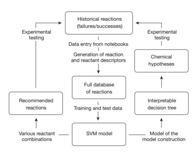 例如上面这幅图,是使用SVM和决策树来发现无机-有机杂化材料,并且登上了Nature的封面。