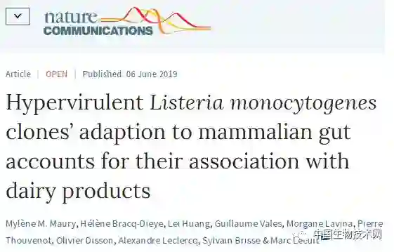 近期,在《Nature communications》上发表了一篇名为《Hypervirulent Listeria monocytogenes clones’ adaption to mammalian gut accounts for their association with dairy products》的文章。