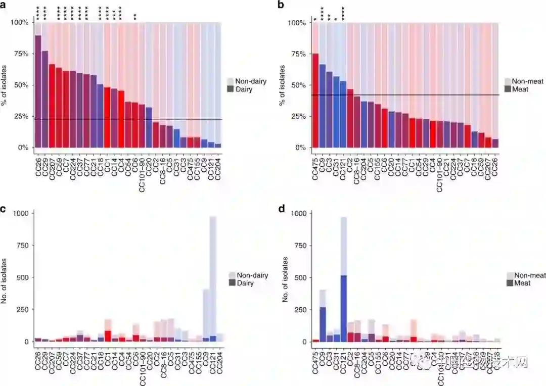 5、研究者进行了全基因组关联研究(GWAS),借以鉴别与乳源或肉源相关的基因,从而鉴别出可能参与宿主定殖或适应食物生产环境的基因。结果表明Lm需要获得新的辅助基因来适应另一种环境。