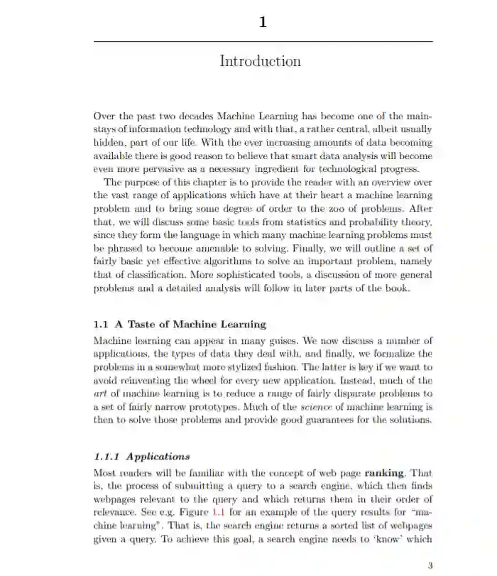 在过去的二十年里,机器学习已经成为信息技术的支柱之一,并因此成为我们生活中相当核心(尽管通常是隐藏的)的一部分。随着可用数据量的不断增加,我们有充分的理由相信,智能数据分析将变得更加普遍,成为技术进步的必要因素。本章的目的是为读者提供一个广泛的应用的概述,这些应用的核心是一个机器学习问题,并给这一大堆问题带来一定程度的秩序。在那之后,我们将讨论一些来自统计和概率论的基本工具,因为它们构成了许多机器学习问题必须被表述成易于解决的语言。最后,我们将概述一套相当基本但有效的算法来解决一个重要的问题,即分类。更复杂的工具,更普遍的问题的讨论和详细的分析将在本书后面的部分。