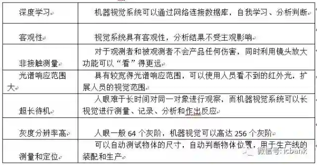 表一:机器视觉相对人眼的优势