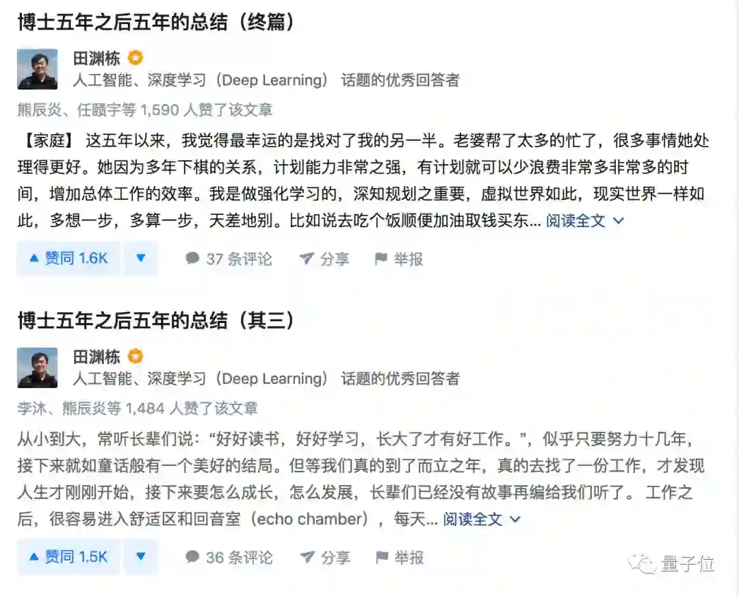 去年,田渊栋回顾自己近几年的工作感悟和学习生涯的文章《博士五年之后五年的总结》,曾成为圈内的爆款文章,不少网友再次被圈粉,大呼醍醐灌顶。