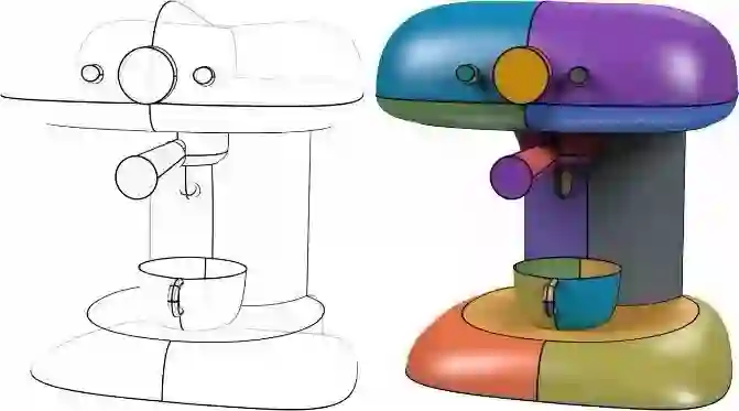 图1 咖啡机:空间曲线框和对应的填充后的三维形状