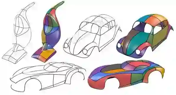 简而言之,用户只需要绘制简单、粗糙的线框草图,计算机便能从草图出发构造符合用户期望的完整三维形状。绘制造型技术是图形学的重要研究领域,主要原因是只需要输入一个简单、直观的草图便可产生复杂而准确的空间形状。
