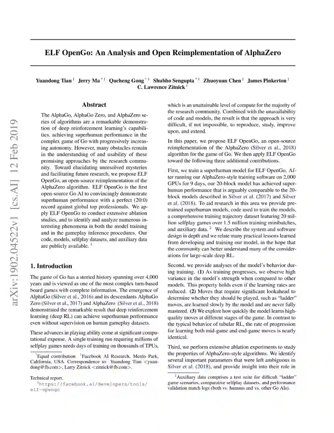 我们去年发布了AlphaZero的重新实现版本,同时我们呢认识到,由于需要大量的计算资源,即使发布了开源大卖,大多数研究人员也无法重现我们的结果,这也是我们在一篇文章中分享的那样,这项研究揭示了为什么人工智能对人类玩家如此强大,也阐明了这项技术的局限性,这可能有助于研究人员更好的理解其潜在机制,并将其应用于其他情况。