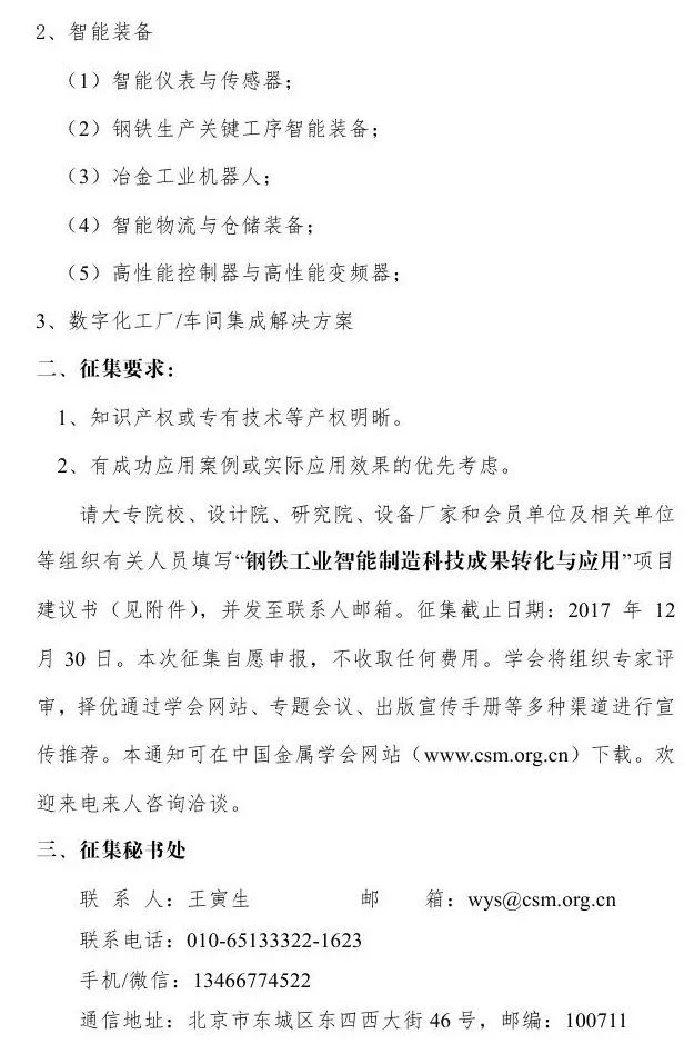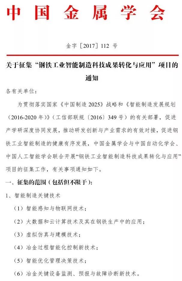 【重要通知】关于征集“钢铁工业智能制造科技成果转化与应用”项目的通知