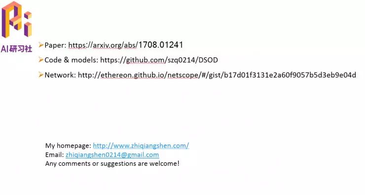 在近期雷锋网(公众号:雷锋网) AI研习社的线上分享会上,该论文的第一作者——复旦大学Ph.D沈志强为我们带来了对DSOD的详细解读,与此同时也介绍了他在CVPR 2017和ICCV 2017上的一些其它研究工作。