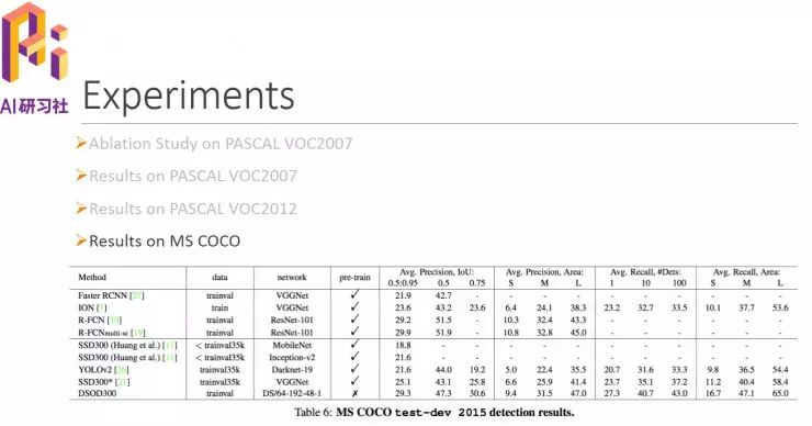 接下来是在COCO上面的一些结果,对比起来DSOD的也有很好的性能。