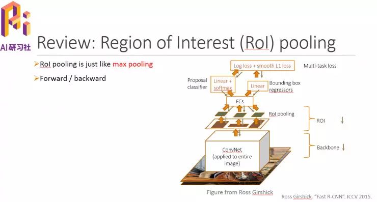 可以在下图中看到forward和backward情况,把Rol pooling去掉这个框架就类似于YOLO和SSD。