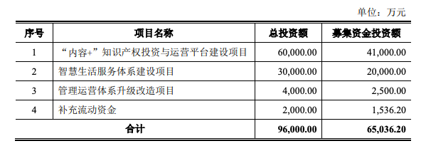 “内容“这个词也成为这场IPO的关键词汇。据招股书披露的数据,中信出版拟募集9.6亿元资金,其中6亿将用于“内容+”知识产权投资与运营平台建设项目。至于这个“内容+”项目究竟是什么,招股书里只透露了是一个包含“内容产品化、文化消费、IP运营”等项目的内容运营平台。