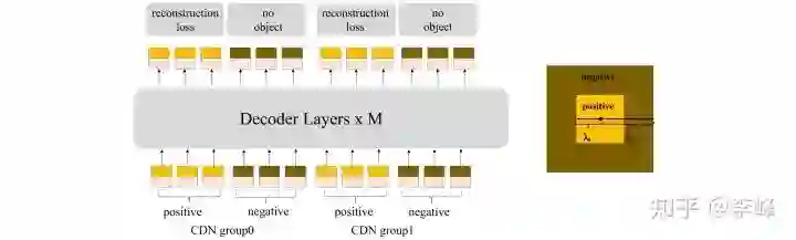 DN的去噪训练里面引入的噪声样本都是正样本来进行学习,然而模型不仅需要学习到如何回归出正样本,还需要意识到如何区分负样本。例如,DINO的decoder中用了900个query,而一张图中一般只会有几个物体,因此绝大部分都负样本。