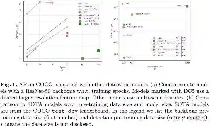 因此,我们很感兴趣的事就是,DETR这种简洁、端到端可学习的目标检测器,同时还有更强的模型Transformer的加持,能否无法取得更好的表现?