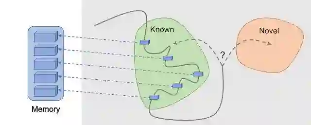 但是如何确定智能体看到的场景已经存在于记忆中呢?精确匹配是无意义的:在现实环境中,智能体很少两次看到同样的事物。例如,即使智能体返回同样的房间,它仍然会以不同于已有记忆的角度来看待这个房间。