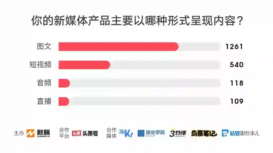 有越来越多人在尝试以更多样化的方式呈现内容,同时以上述三种或四种作为主要内容呈现形式的约占8%。