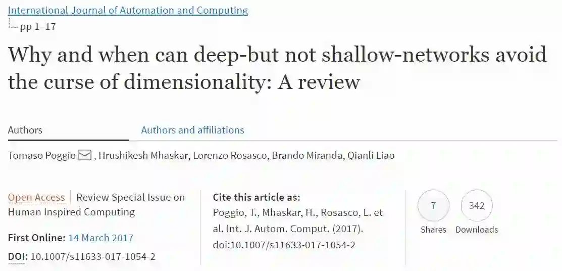 论文一:深度网络而非浅度网络可以避开维度诅咒的原因和时间:一个概述(Why and when can deep-but not shallow-networks avoid the curse of dimensionality: A review)