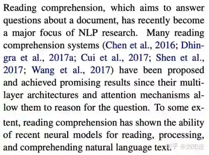 介绍本文的研究任务及其在该研究领域的重要价值和意义。如果是领域公认的重要任务的话,则可以不用详细论述其研究价值/意义;如果是新提出的研究任务,则需要花费比较多篇幅论证该任务的价值。如下所示论文 [2] 的第 1 段集中说明阅读理解研究任务。