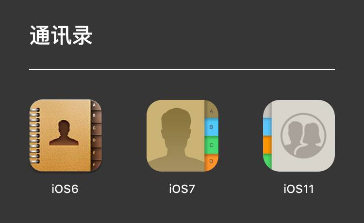 通讯录图标的进化叙述了一段情感经历:起初这位男士身边有六位感情不错的女孩儿,犹豫多年,E 女士和 F 女士离开。四年后终于找到了女朋友,ABCD 皆成回忆。