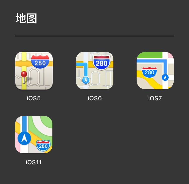 从 iPhone OS 到 iOS 11,iOS 已经走过十年的历史。这款操作系统经历了智能手机尺寸的变大,视觉风格扁平化,内置智能助手等等风潮。这篇文章,带你回顾 iOS 系统主要内置应用的图标变化。我们从「最有故事」的地图图标开始: