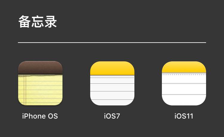 相机图标从 iPhone OS 到 iOS 6一直在做很小的细节调整。iOS 7 版本没有像想象中那样拍扁这颗镜头,而是拍出一个单反相机来。但实际上,iOS 7 版图标中包含一些光影细节:两根细线以及中间的圆环,小黄点都有不一样的阴影效果。实在佩服苹果的细节,虽然我们一直以为它是纯平的。iOS 11 版中的相机图标减少了一些细节,更圆润。