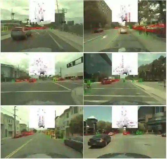 4、KITTI上的定性检测结果如图4所示。即便是在汽车很远或者严重遮挡的场景,该模型也能很好地检测到汽车。