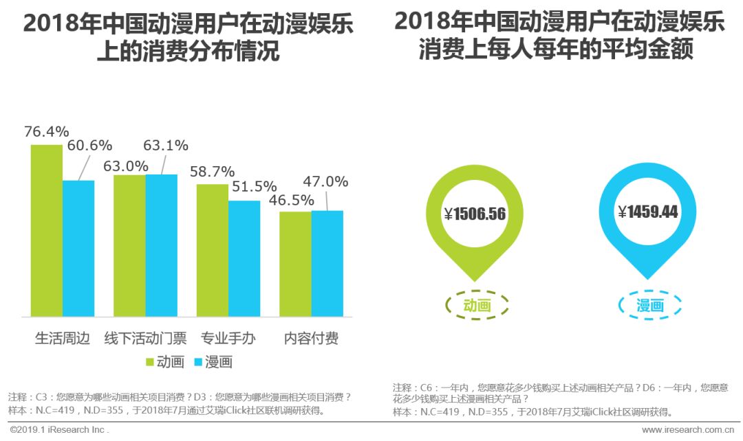 受互联网上资料无成本共享习惯的长期影响,我国的动漫用户还没有养成很好的为内容付费的习惯,用户在为动漫娱乐进行消费方面,在内容消费上的付费意愿最低,漫画内容付费的意愿略高于动画。但是,用户在文化衫、玩具文具等生活周边上的付费意愿很高,漫画有60.6%的用户、动画有76.4%的用户都愿意为动漫的生活周边付费,一来这些商品的实际用途比较多,二来这些商品相比于专业手办来价格更加亲民,大部分用户对他们有更强的消费能力。