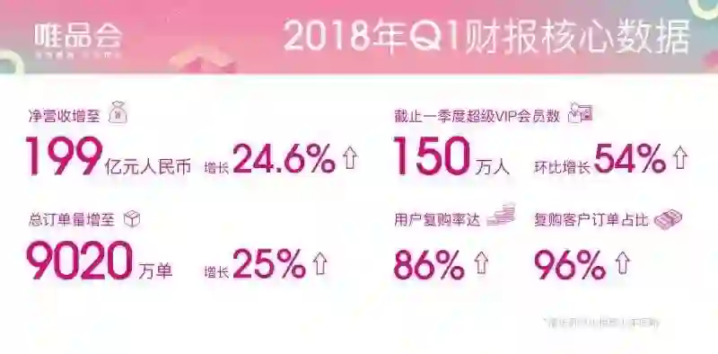 财报显示,唯品会一季度人均消费同比增长25%;人均订单同比增长25%;用户复购率为86%,高于去年同期的77%,96%的订单是重复客户所购买。截止一季度,超级VIP会员数环比增长54%。