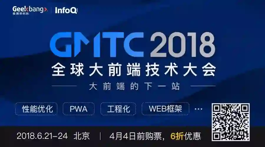 PWA、Web 框架、UI 与动画、Node... 大前端的下一站在哪里?前端工程师的价值和成长路径是什么?GMTC2018 上,来自 Google、Facebook、BAT 等 60+ 国内外一线前端大牛,将与你面对面探讨大前端领域最新技术趋势和实践,想要升职加薪就快来吧!扫描下方二维码或点击“阅读原文”解锁更多大会详情!