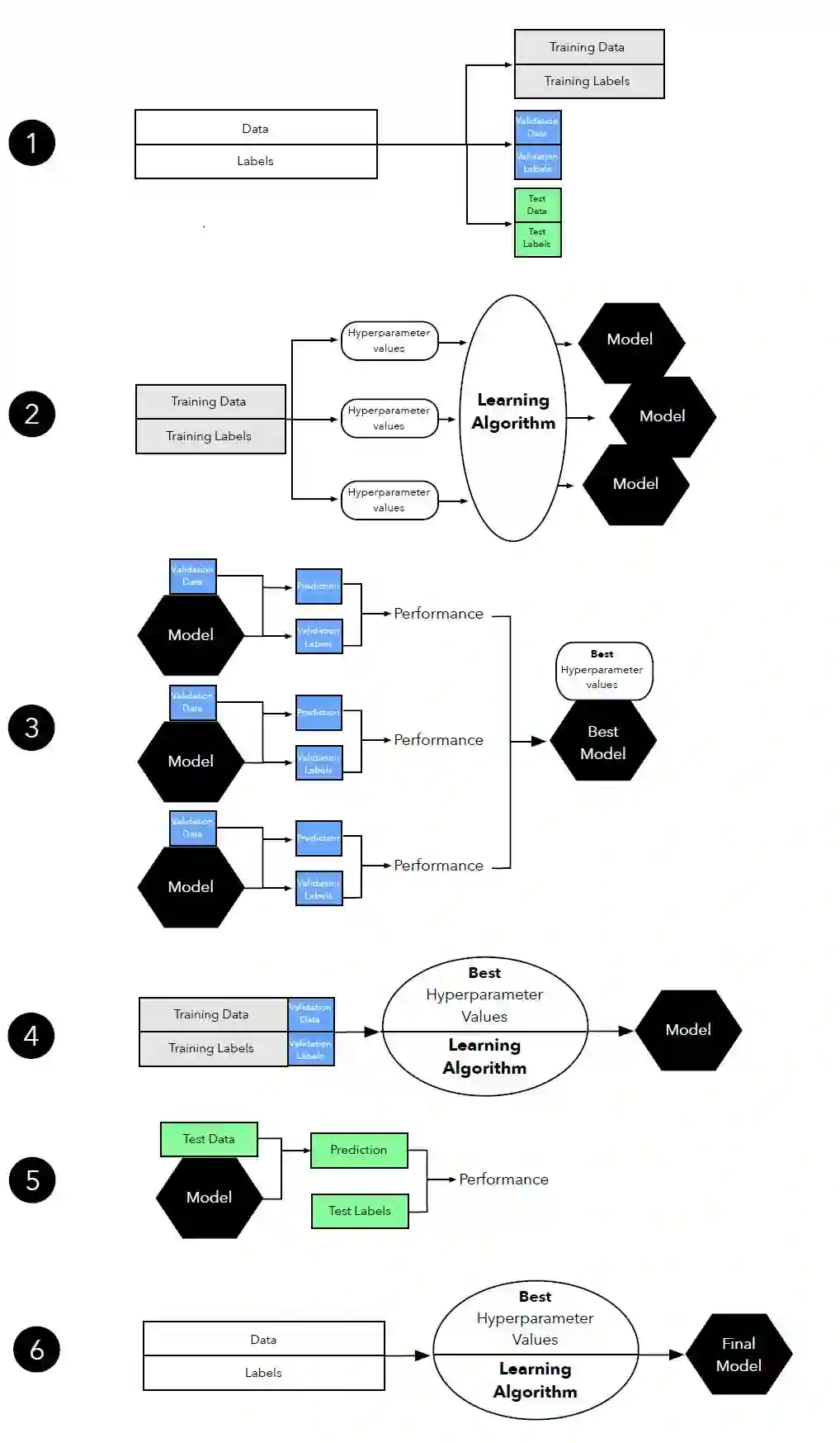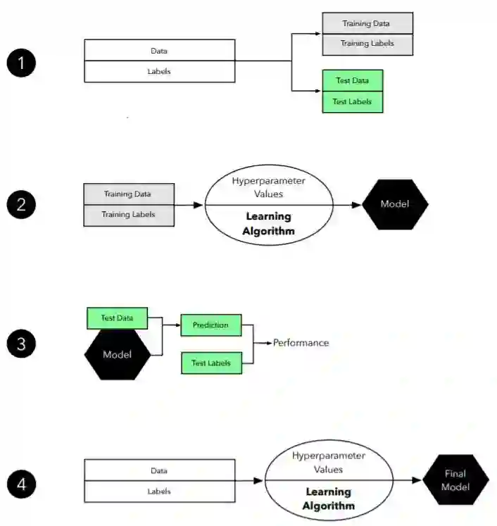 几乎所有机器学习算法都需要机器学习研究者和从业者指定大量设置。这些超参数控制机器学习算法在优化性能、找出偏差方差最佳平衡时的行为。用于性能优化的超参数调整本身就是一门艺术,没有固定规则可以保证在给定数据集上的性能最优。前面的章节提到了用于评估模型泛化性能的留出技术和 bootstrap 技术。偏差-方差权衡和计算性能估计的不稳定性方法都得到了介绍。这里重点介绍用于模型评估和选择的不同交叉验证方法,包括对不同超参数配置的模型进行排序和评估其泛化至独立数据集的性能。