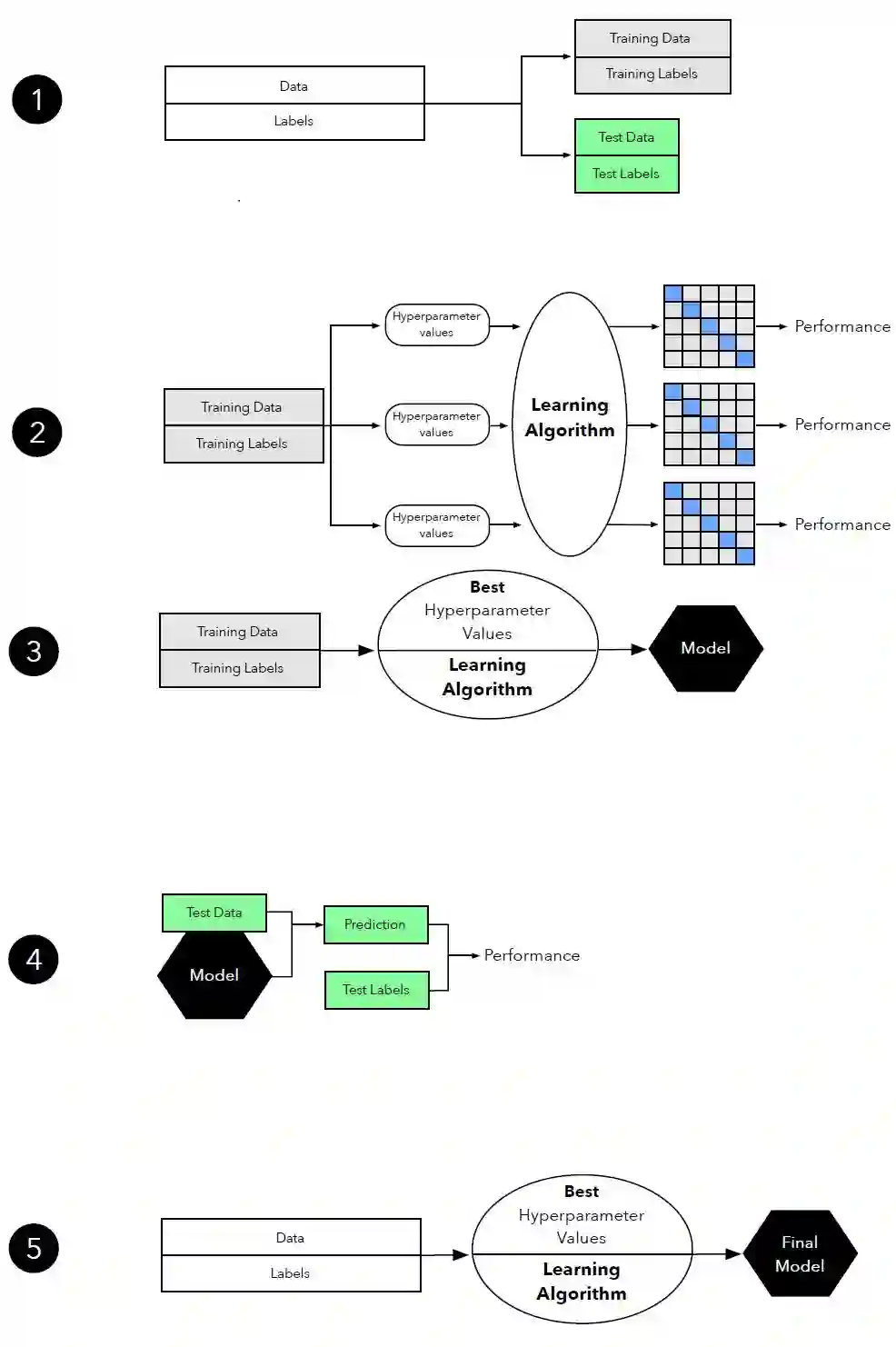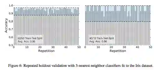 本文回顾了用于解决以上三项任务中任何一个的不同技术,并参考理论和实证研究讨论了每一项技术的主要优势和劣势。进而,给出建议以促进机器学习研究与应用方面的最佳实践。本文涵盖了用于模型评估和选择的常见方法,比如留出方法,但是不推荐用于小数据集。不同风格的 bootstrap 技术也被介绍,以评估性能的不确定性,以作为通过正态空间的置信区间的替代,如果 bootstrapping 在计算上是可行的。在讨论偏差-方差权衡时,把 leave-one-out 交叉验证和 k 折交叉验证进行对比,并基于实证证据给出 k 的最优选择的实际提示。论文展示了用于算法对比的不同统计测试,以及处理多种对比的策略(比如综合测试、多对比纠正)。最后,当数据集很小时,本文推荐替代方法(比如 5×2cv 交叉验证和嵌套交叉验证)以对比机器学习算法。