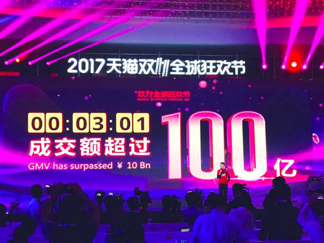 1、天猫淘宝“双十一”约30秒成交量破10亿元人民币,3分01秒成交量突破100亿