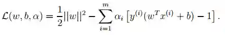那个尖括号我们可以用核函数代替,这也是svm经常和核函数扯在一起的原因。