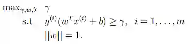 1. svm中的最优分类面是对所有样本的几何裕量最大(为什么要选择最大间隔分类器,请从数学角度上说明?网易深度学习岗位面试过程中有被问到。答案就是几何间隔与样本的误分次数间存在关系: ,其中的分母就是样本到分类间隔距离,分子中的R是所有样本中的最长向量值),即: